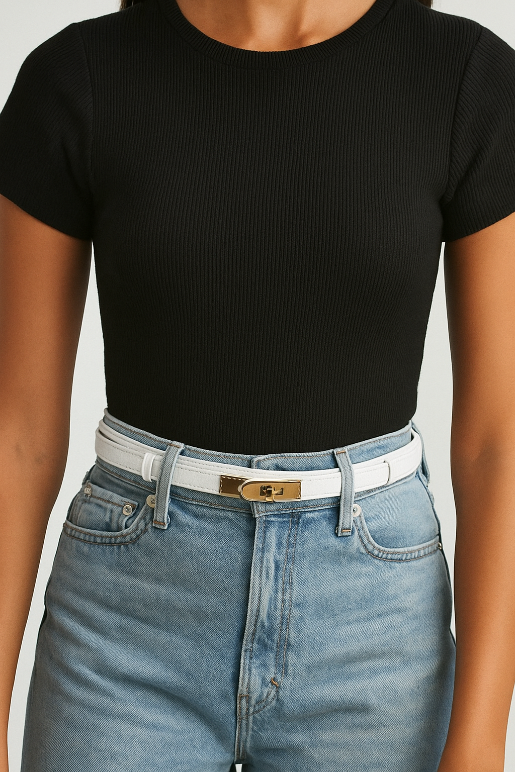 Adjustable Italian Leather Belt with Gold Buckle by Modex™