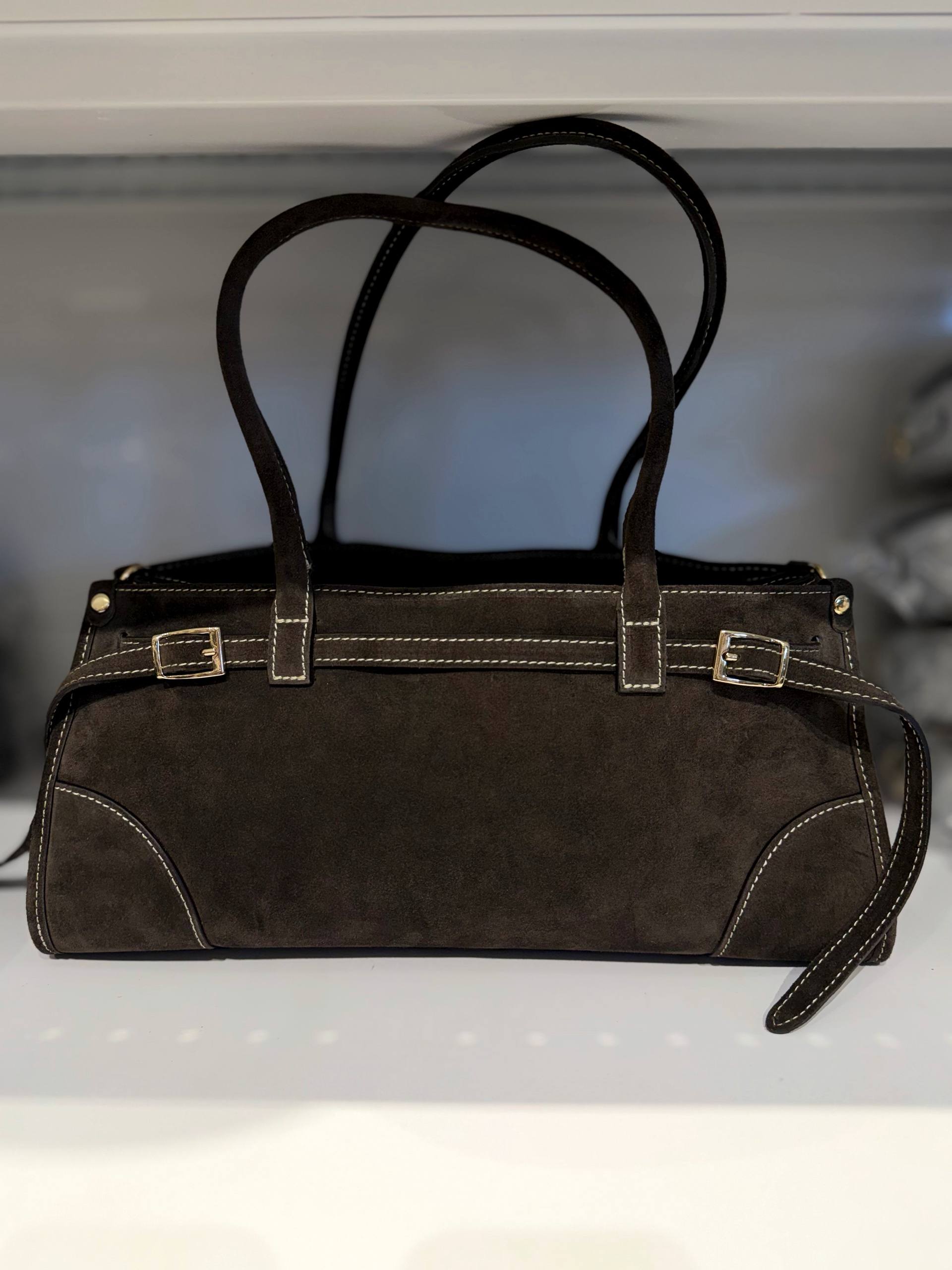 Elongated Suede Shoulder Bag