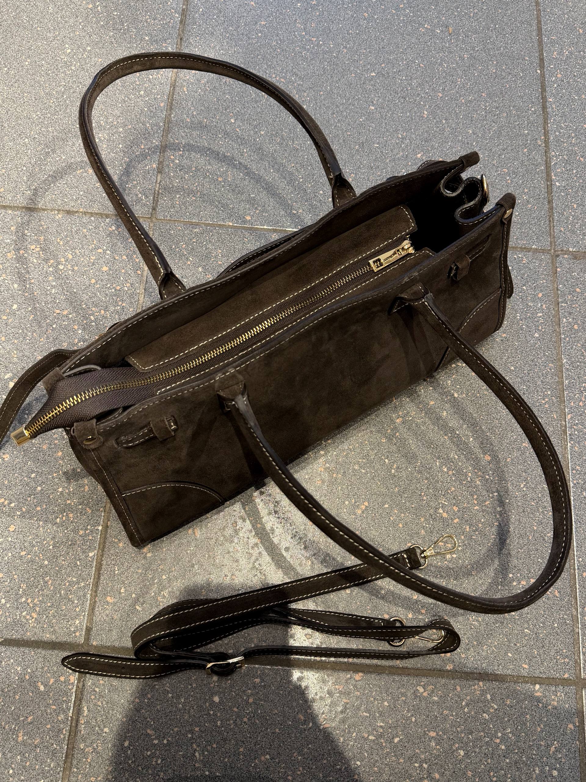✔️ Material: Genuine suede with leather trim