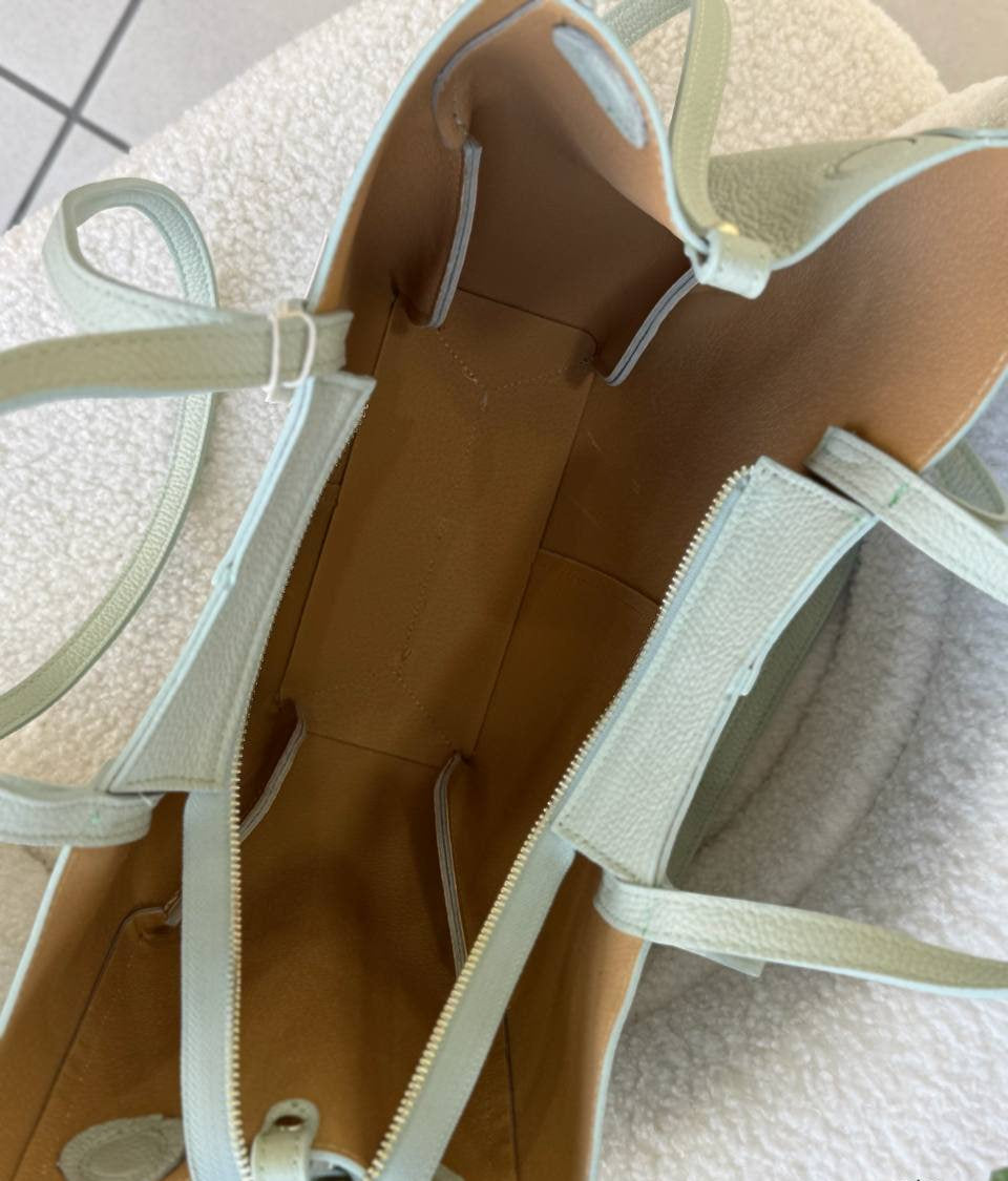 A clean, modern tote bag crafted from genuine Italian leather. Soft yet structured, it’s designed for everyday use with enough space for essentials while maintaining an elegant silhouette. The bag features comfortable double handles and a removable zip pouch, perfect for organizing smaller items.