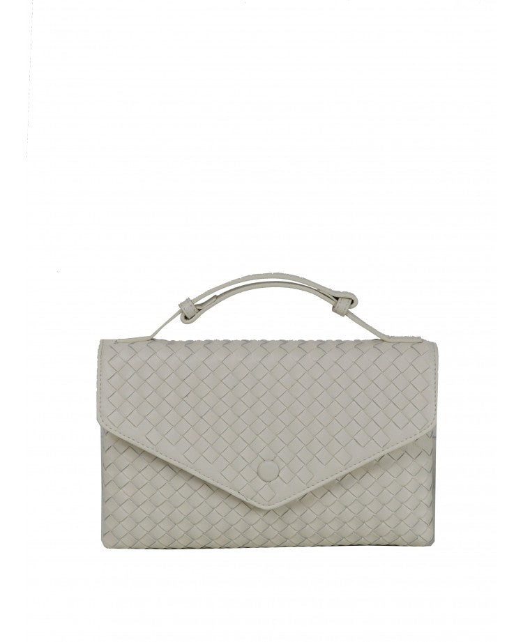 A refined Italian leather postina bag featuring an elegant woven texture and structured silhouette. Designed for everyday sophistication, it combines compact proportions with practical organization. The top handle adds a polished touch, while the removable leather strap allows effortless shoulder or crossbody styling.